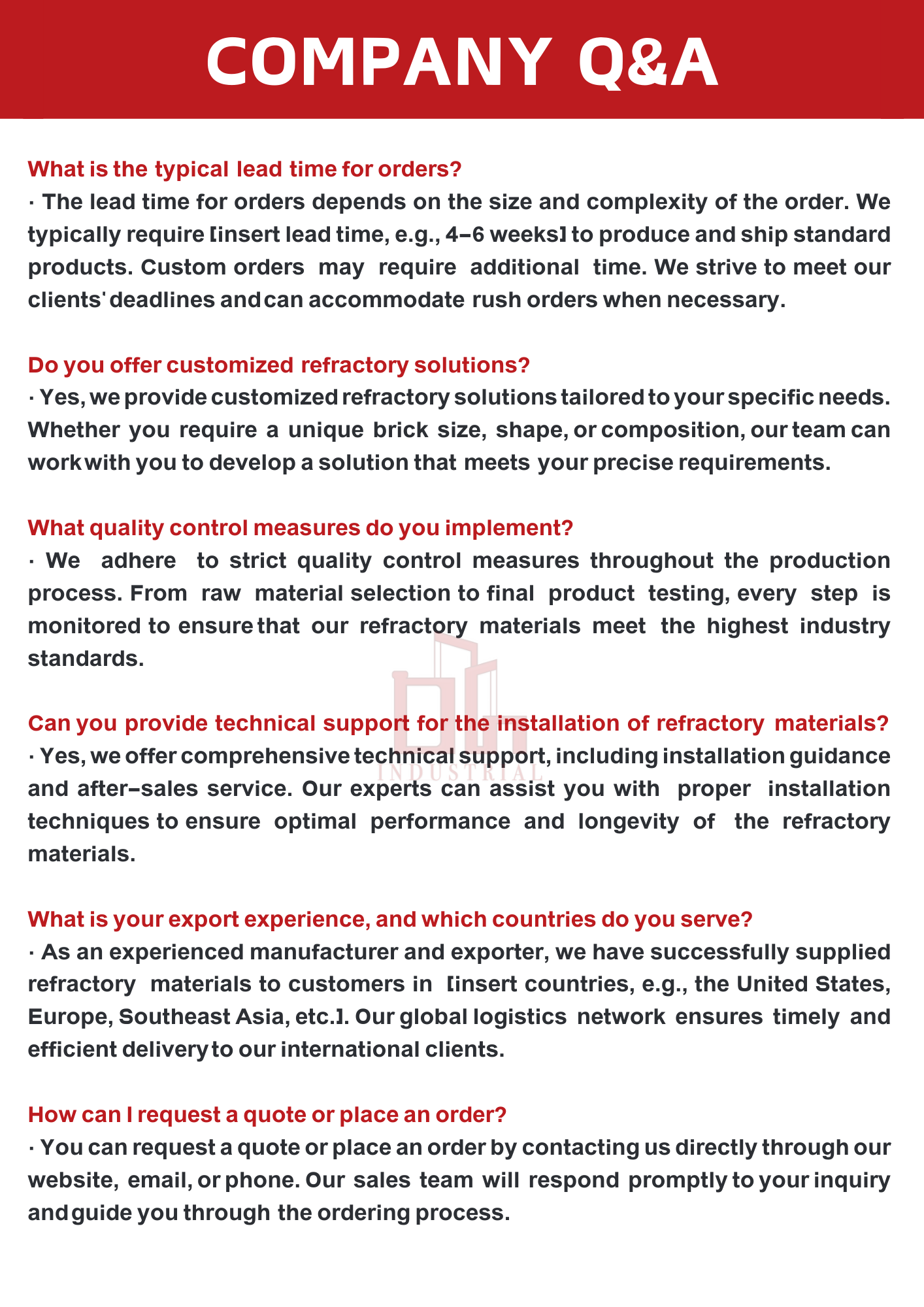 | Apparent porosity% 1400℃*3h | 20-22 | 16-18 | - | - | - |